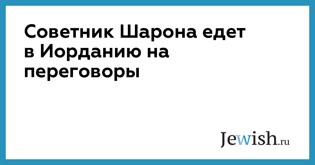 Советник Шарона едет в Иорданию на переговоры