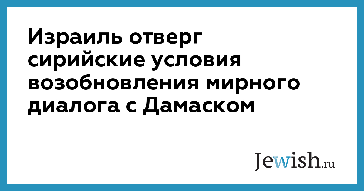 Израиль отверг сирийские условия возобновления мирного диалога с Дамаском