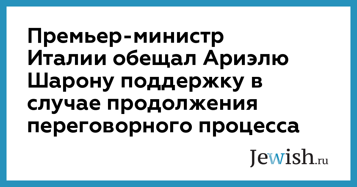 Премьер-министр Италии обещал Ариэлю Шарону поддержку в случае продолжения переговорного процесса
