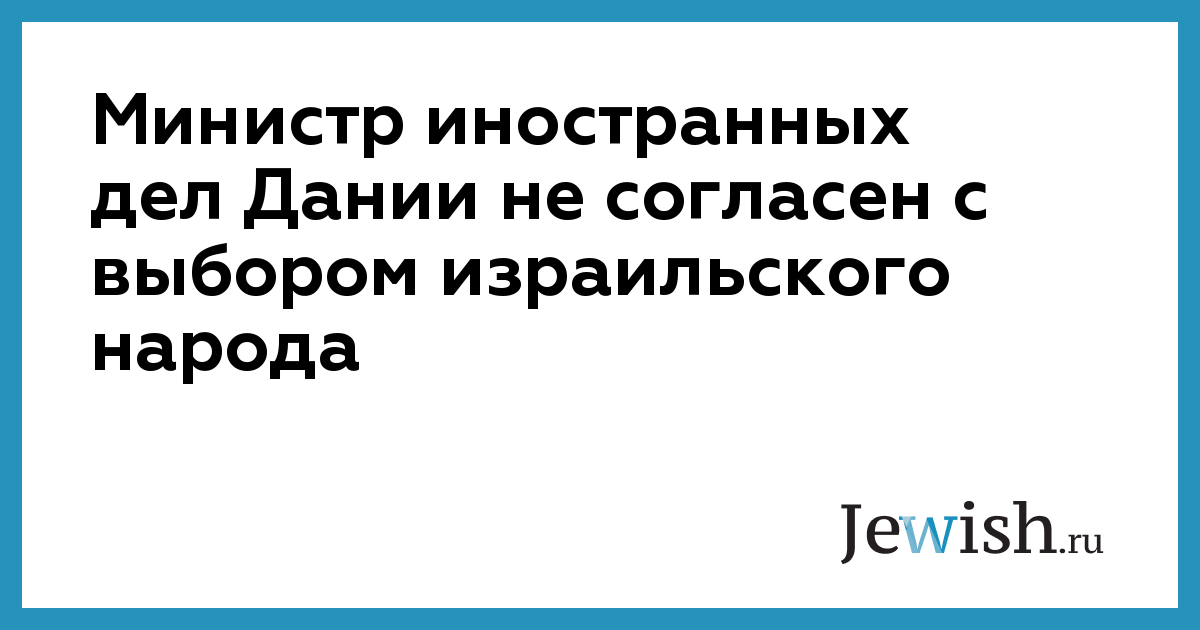 Министр иностранных дел Дании не согласен с выбором израильского народа