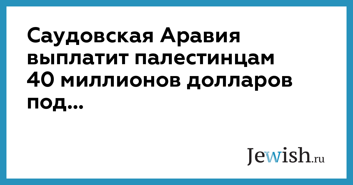 Саудовская Аравия выплатит палестинцам 40 миллионов долларов под...