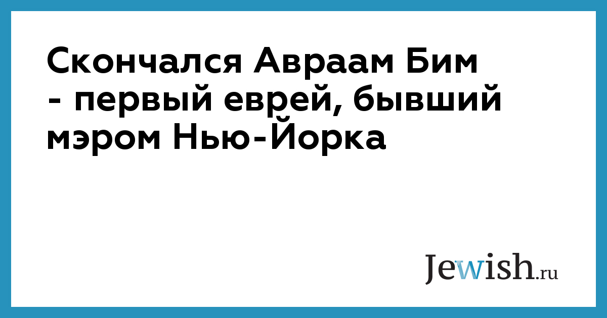 Скончался Авраам Бим — первый еврей, бывший мэром Нью-Йорка