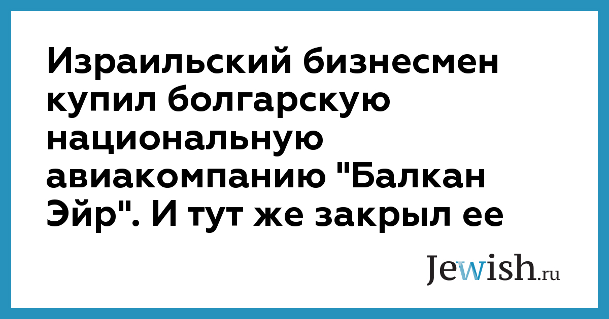 Израильский бизнесмен купил болгарскую национальную авиакомпанию "Балкан Эйр". И тут же закрыл ее