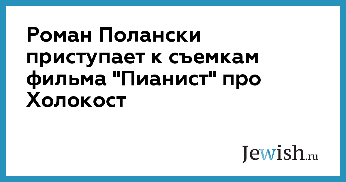 Знаменитый режиссер, автор фильмов "Отвращение", "Девятые врата", "Ребенок Розмари", дал пресс-конференцию на киностудии Babelsberg, в павильоне, где устанавливают декорации для его нового фильма "Пианист". Это будет экранизация автобиографической книги польского музыканта Владислава Шпильмана, пережившего ужасы варшавского гетто и спасенного от концлагеря немецким офицером. Четыре страны примут участие в производстве картины – Франция, Польша, Германия и Англия. Сниматься будут поляки в ролях поляков, немцы в ролях немцев, а также американец в роли самого Шпильмана. Поначалу кандидата на эту роль искали среди англичан, а когда поиски закончились безрезультатно, был приглашен Эдриен Броуди, известный нам по роли панка в "Кровавом лете Сэма". Первый из 84-х съемочных дней назначен на 19 февраля. Роман Полански рассказал, что эта студия была выбрана по нескольким причинам: "Во-первых, нам нужно было место неподалеку от Варшавы, где тоже будут проходить съемки. Во-вторых, нужны были руины, и мы нашли их недалеко от Берлина. В-третьих, только здесь можно построить грандиозные декорации, которые потребуются для съемок". Режиссер также сообщил, что поиск исполнителя главной роли по интернету, на который он решился, не дал никаких результатов: "Ежедневно к нам обращались до четырех тысяч человек, в том числе негры и женщины. Эдриен Броуди в это время снимался в Париже, потом меня пригласили на просмотр, и я понял, что нашел актера. Он ведь музыкант, играет по нескольку часов в день".