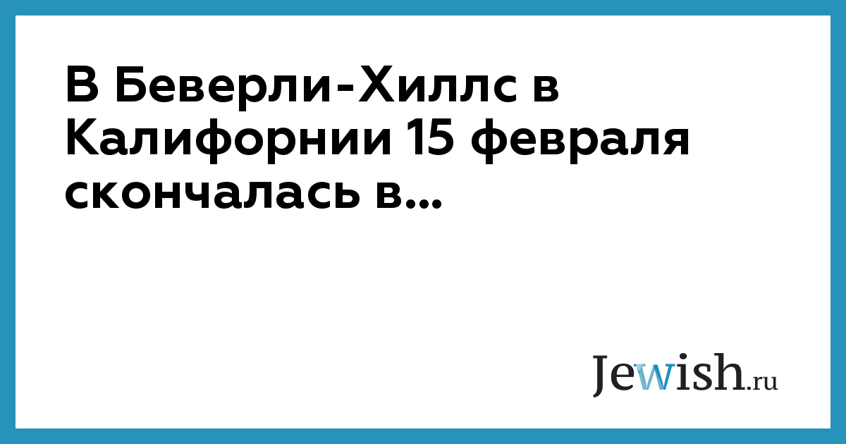 В Беверли-Хиллс в Калифорнии 15 февраля скончалась в...