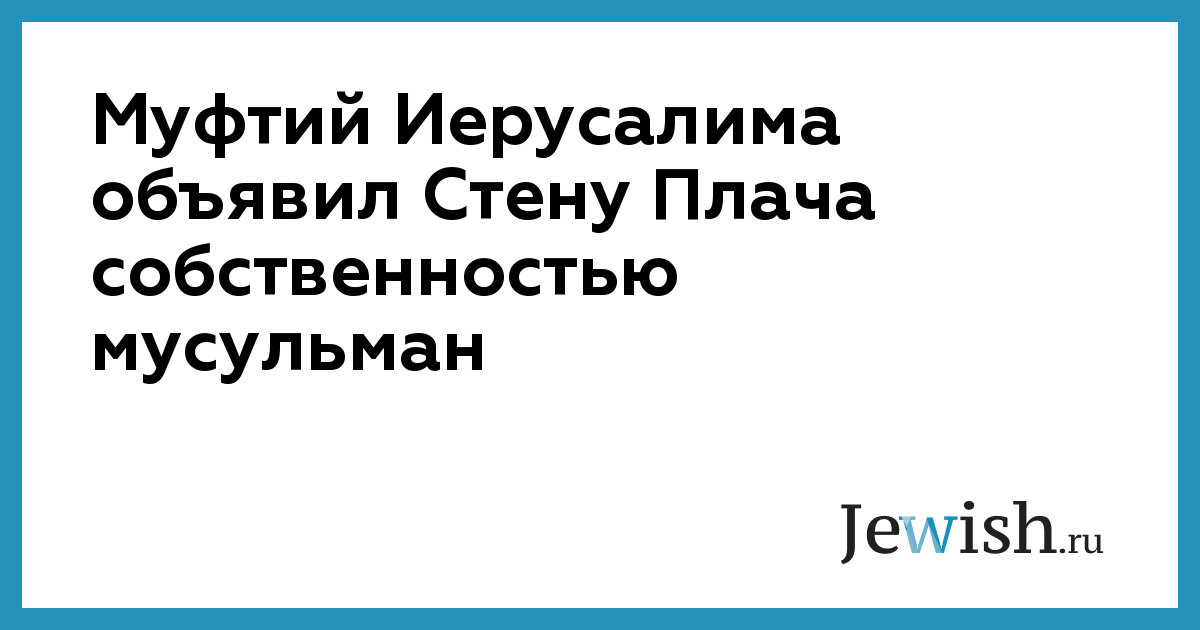 Муфтий Иерусалима Акрам Сабри распространил сегодня официальное заявление, в котором объявил Стену Плача — главную еврейскую святыню Иерусалима — собственностью мусульман. В частности, муфтий заявил, что Стена Плача является западной стеной мечети Аль-Акса, расположенной на Храмовой горе (или, как ее называют мусульмане, Площади мечетей), и, следовательно, принадлежит мусульманам. По словам главы мусульман, "ни один камень в знаменитой стене не принадлежит евреям и не имеет никакого отношения к еврейской истории". В свою очередь, раввин Стены Плача Самуэль Рабинович назвал заявление муфтия "попыткой переписать историю и уменьшить перспективы разрешения арабо-израильского конфликта". "Стена на протяжении многих поколений является собственностью народа Израиля, и никакой мусульманский декрет не сможет этого изменить", — подчеркнул раввин. Напомним, что проблема Храмовой Горы остается одним из основных спорных вопросов на палестино-израильских переговорах. Палестина требует полного контроля над мечетями Аль-Акса и Омар, расположенными на Храмовой Горе. В свою очередь Израиль отстаивает право владения Храмовой горой, где сохранились развалины знаменитого Храма Соломона, или, по крайней мере, Стеной Плача.