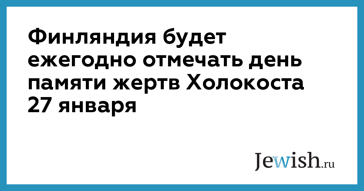 Финляндия будет ежегодно отмечать день памяти жертв Холокоста 27 января