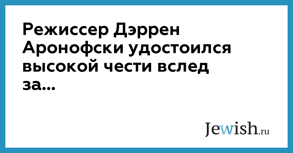 Режиссер Дэррен Аронофски удостоился высокой чести вслед за...