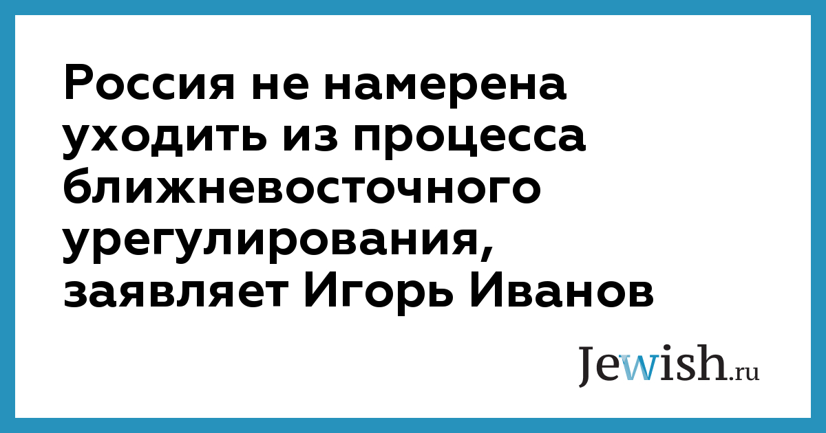 Россия не намерена уходить из процесса ближневосточного урегулирования, заявляет Игорь Иванов