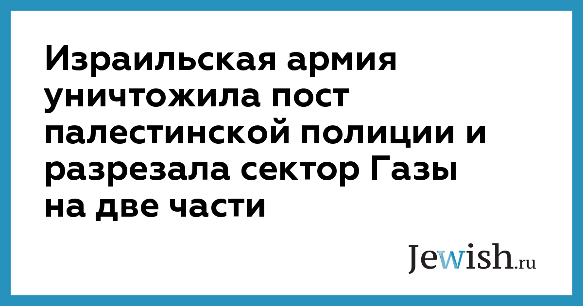 Израильская армия уничтожила пост палестинской полиции и разрезала сектор Газы на две части
