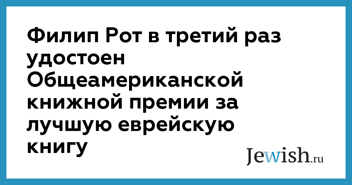 Филип Рот в третий раз удостоен Общеамериканской книжной премии за лучшую еврейскую книгу