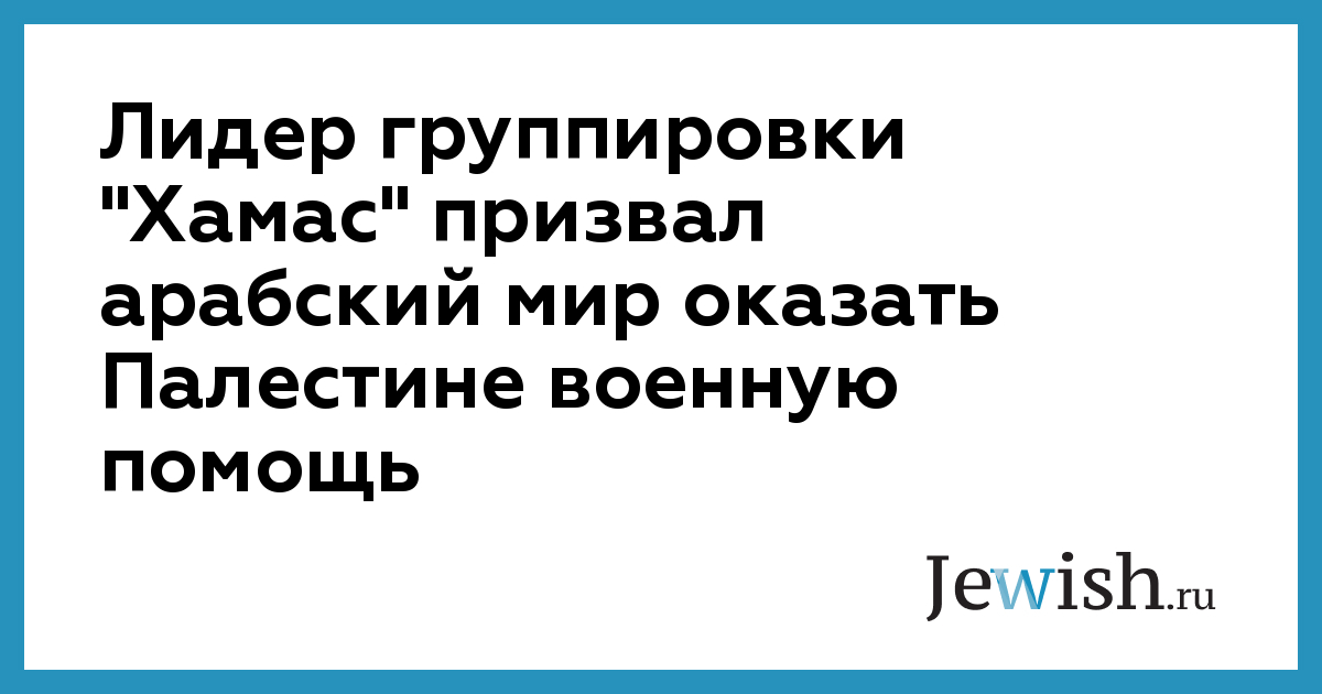 Лидер группировки "Хамас" призвал арабский мир оказать Палестине военную помощь