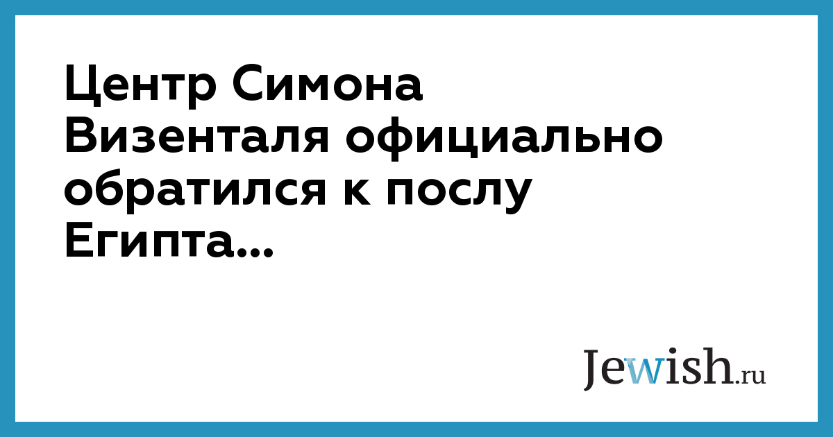 Центр Симона Визенталя официально обратился к послу Египта...