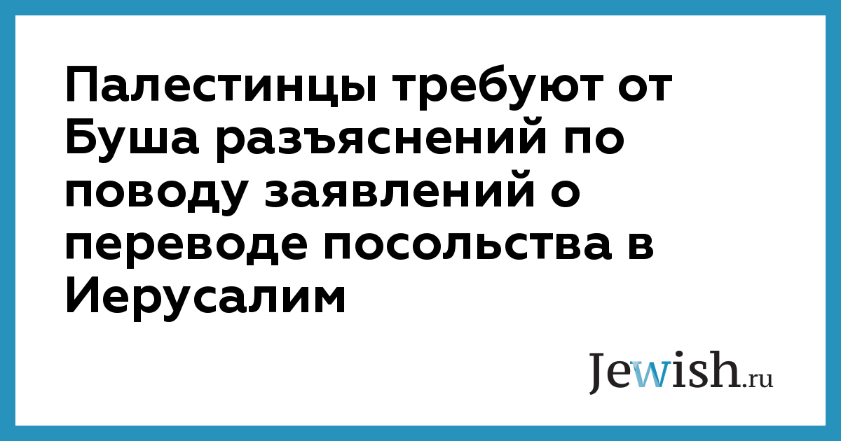 Палестинцы требуют от Буша разъяснений по поводу заявлений о переводе посольства в Иерусалим
