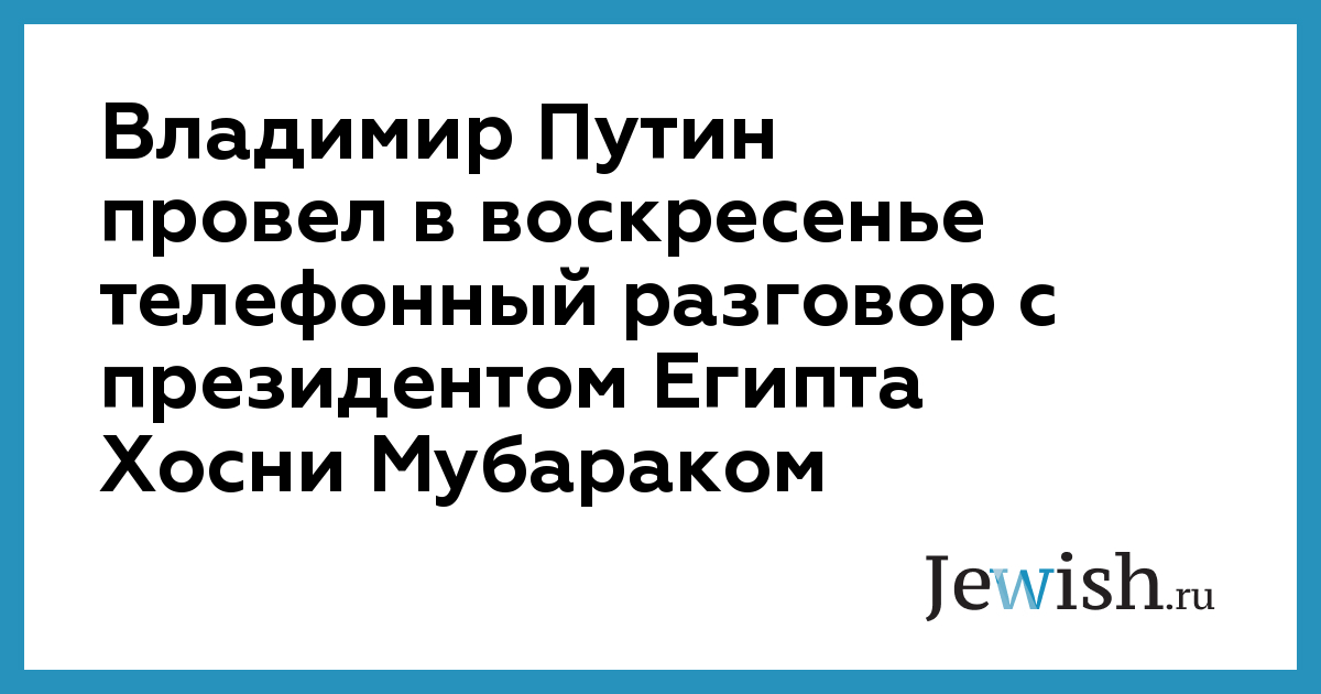 Владимир Путин провел в воскресенье телефонный разговор с президентом Египта Хосни Мубараком
