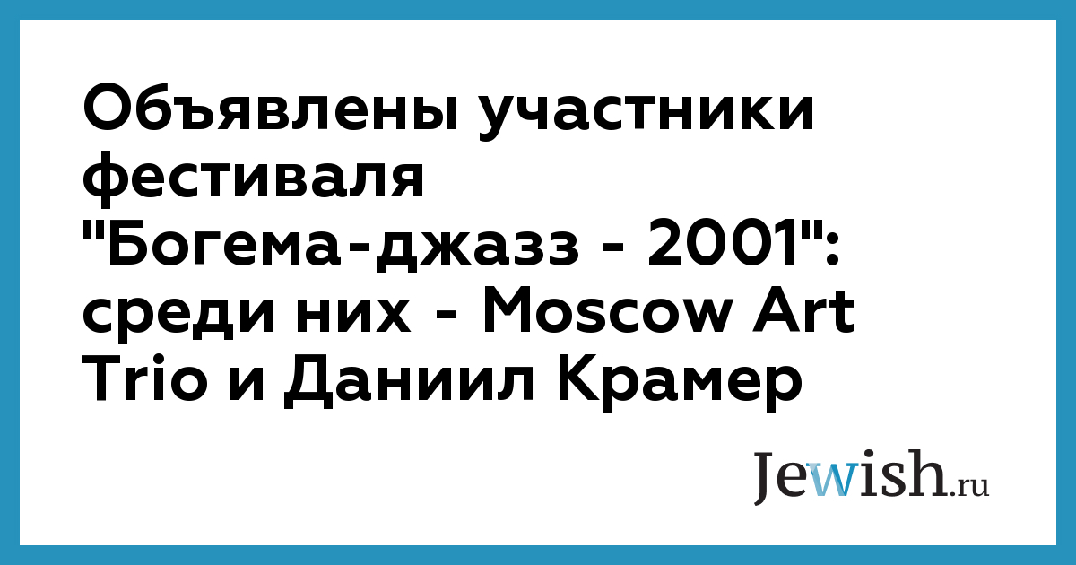 Объявлены участники фестиваля "Богема-джазз — 2001": среди них — Moscow Art Trio и Даниил Крамер