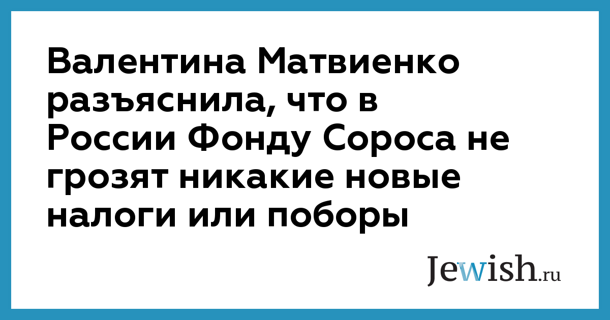 Валентина Матвиенко разъяснила, что в России Фонду Сороса не грозят никакие новые налоги или поборы
