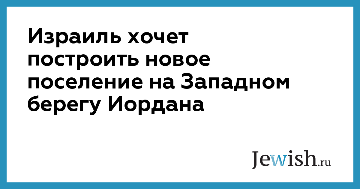 Израиль хочет построить новое поселение на Западном берегу Иордана