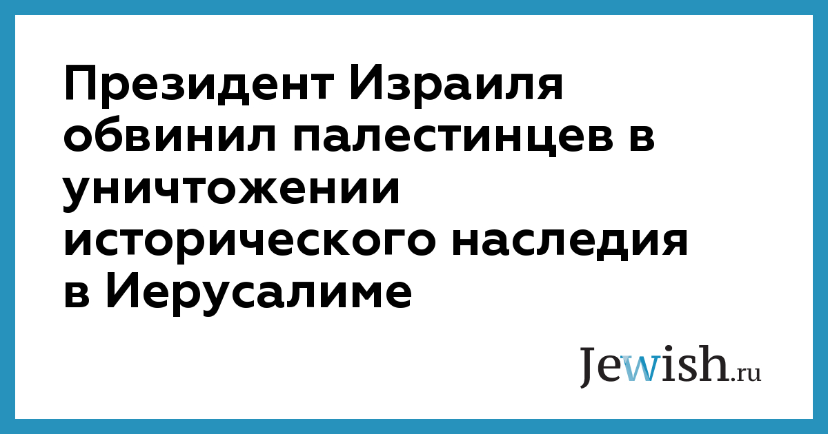 Президент Израиля обвинил палестинцев в уничтожении исторического наследия в Иерусалиме