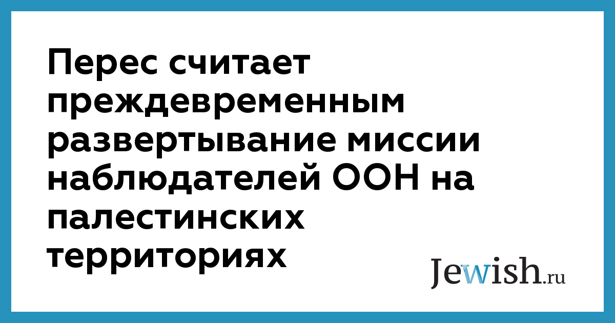Перес считает преждевременным развертывание миссии наблюдателей ООН на палестинских территориях