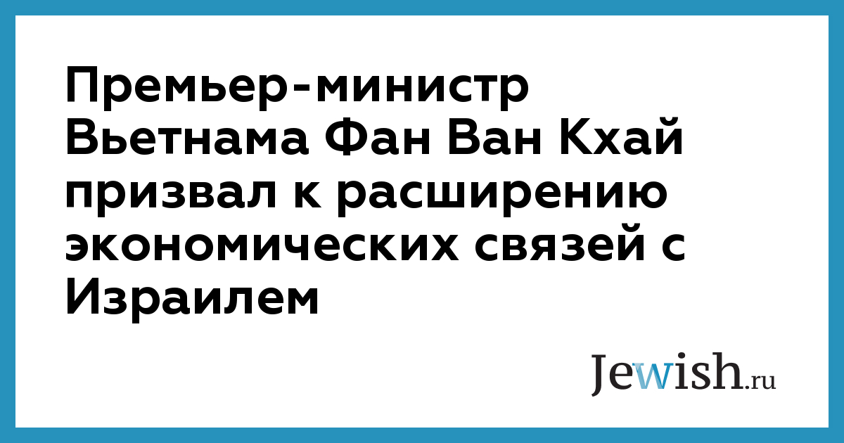 Премьер-министр Вьетнама Фан Ван Кхай призвал к расширению экономических связей с Израилем