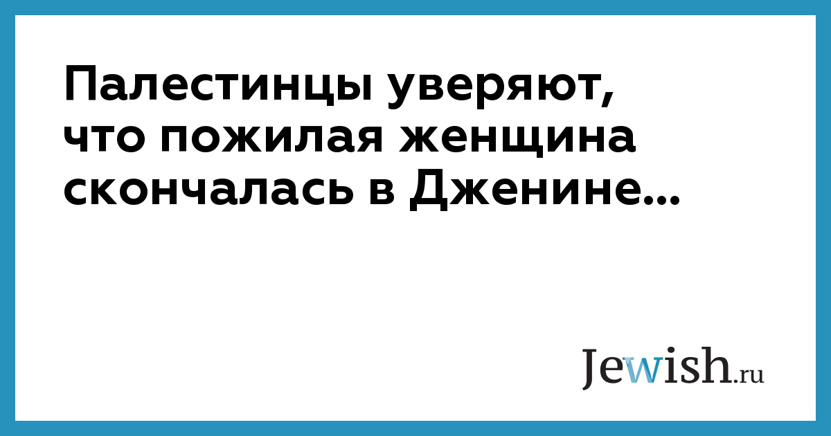 Палестинцы уверяют, что пожилая женщина скончалась в Дженине...