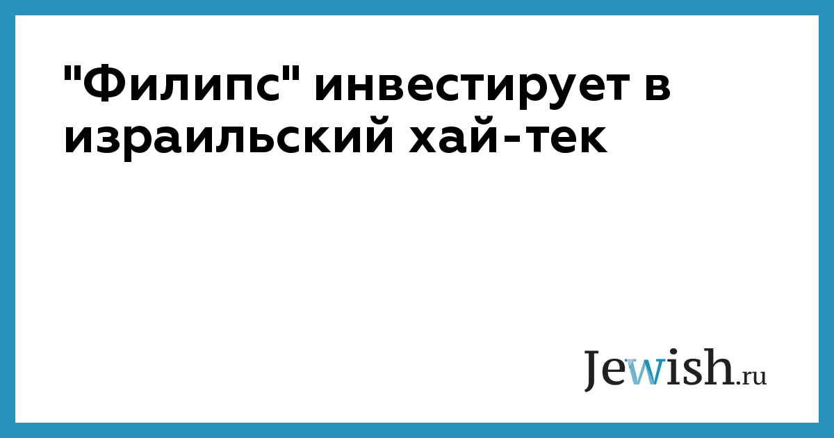 "Филипс" инвестирует в израильский хай-тек
