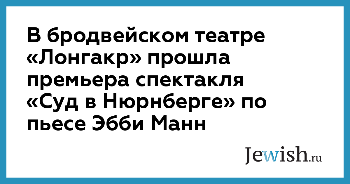 В бродвейском театре «Лонгакр» прошла премьера спектакля «Суд в Нюрнберге» по пьесе Эбби Манн