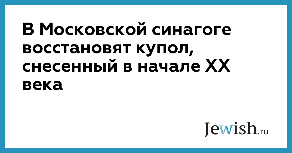 В Московской синагоге восстановят купол, снесенный в начале XX века