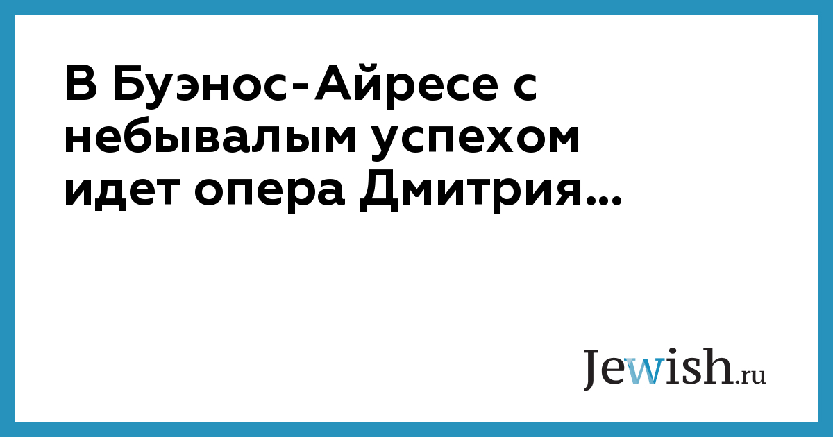 В Буэнос-Айресе с небывалым успехом идет опера Дмитрия...