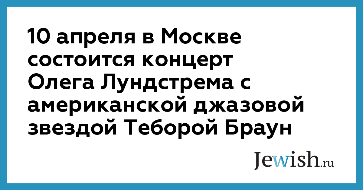 10 апреля в Москве состоится концерт Олега Лундстрема с американской джазовой звездой Теборой Браун