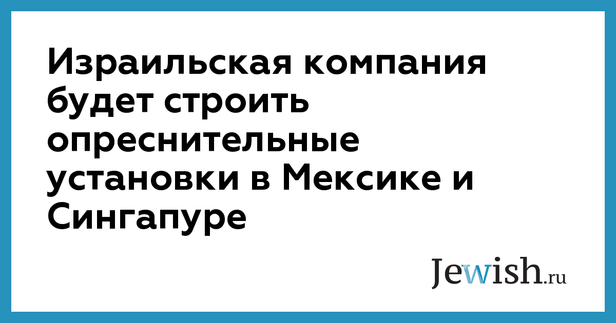 Израильская компания будет строить опреснительные установки в Мексике и Сингапуре