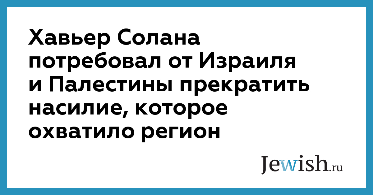 Хавьер Солана потребовал от Израиля и Палестины прекратить насилие, которое охватило регион