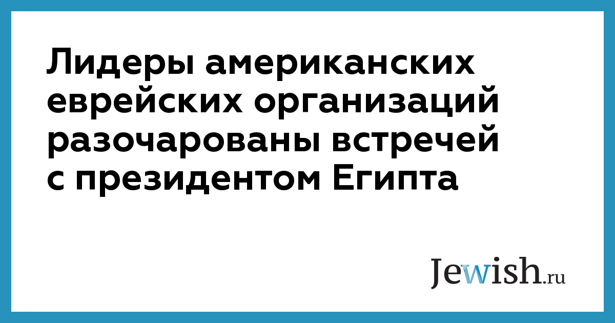 Лидеры американских еврейских организаций разочарованы встречей с президентом Египта