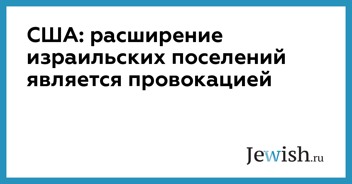 США: расширение израильских поселений является провокацией