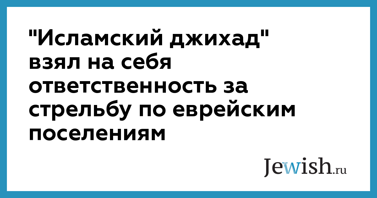 "Исламский джихад" взял на себя ответственность за стрельбу по еврейским поселениям