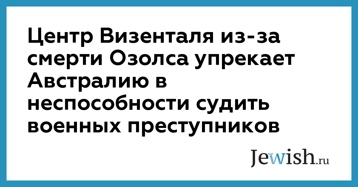 Центр Визенталя из-за смерти Озолса упрекает Австралию в неспособности судить военных преступников