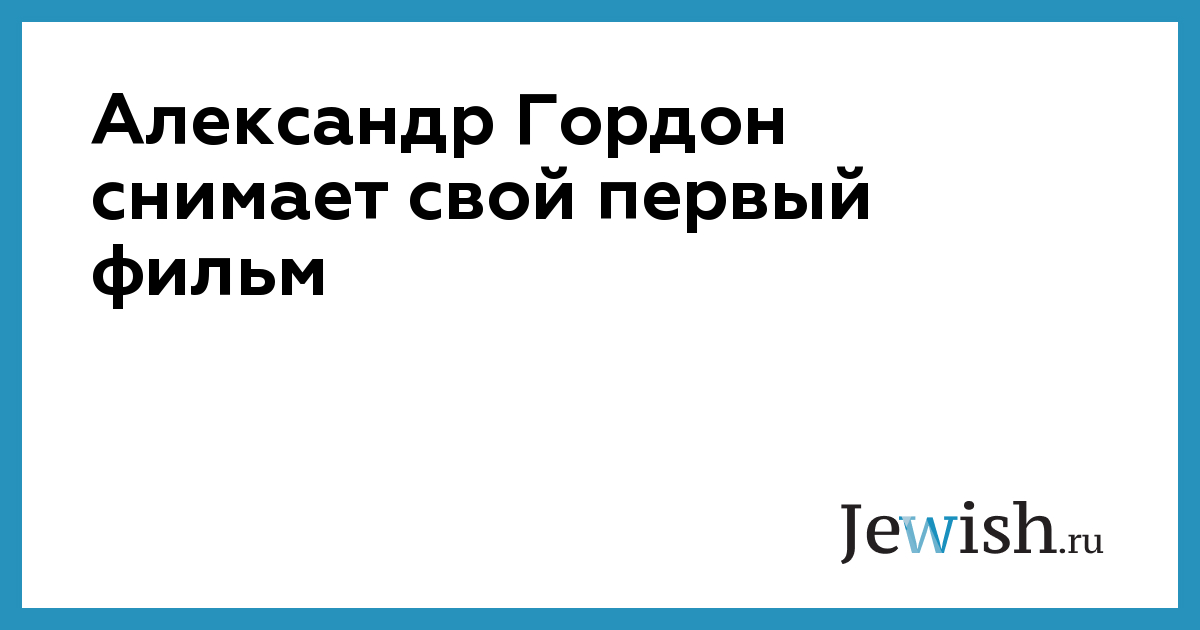 Александр Гордон снимает свой первый фильм