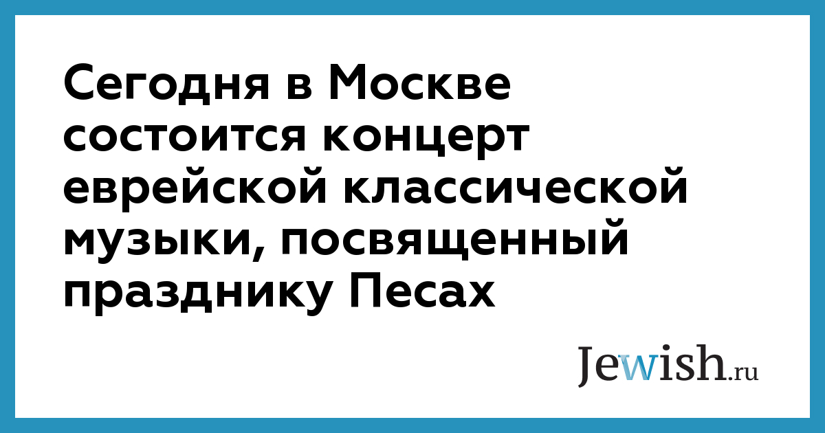 Сегодня в Москве состоится концерт еврейской классической музыки, посвященный празднику Песах