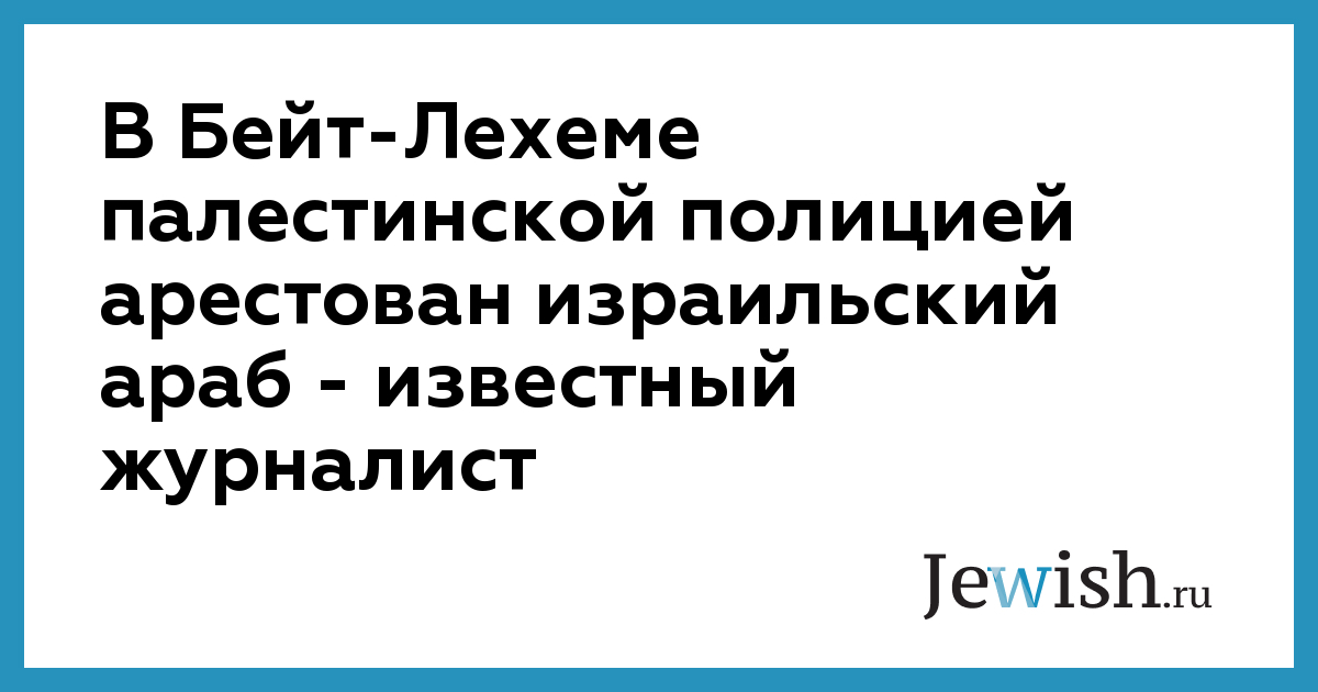 В Бейт-Лехеме палестинской полицией арестован израильский араб — известный журналист