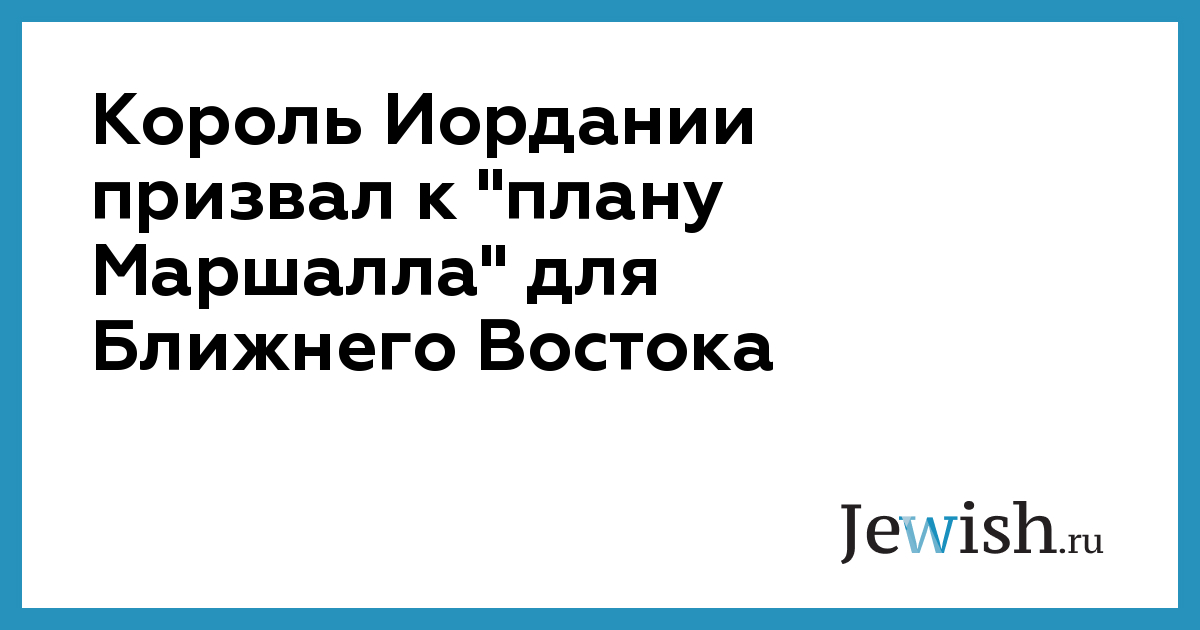 Король Иордании призвал к "плану Маршалла" для Ближнего Востока