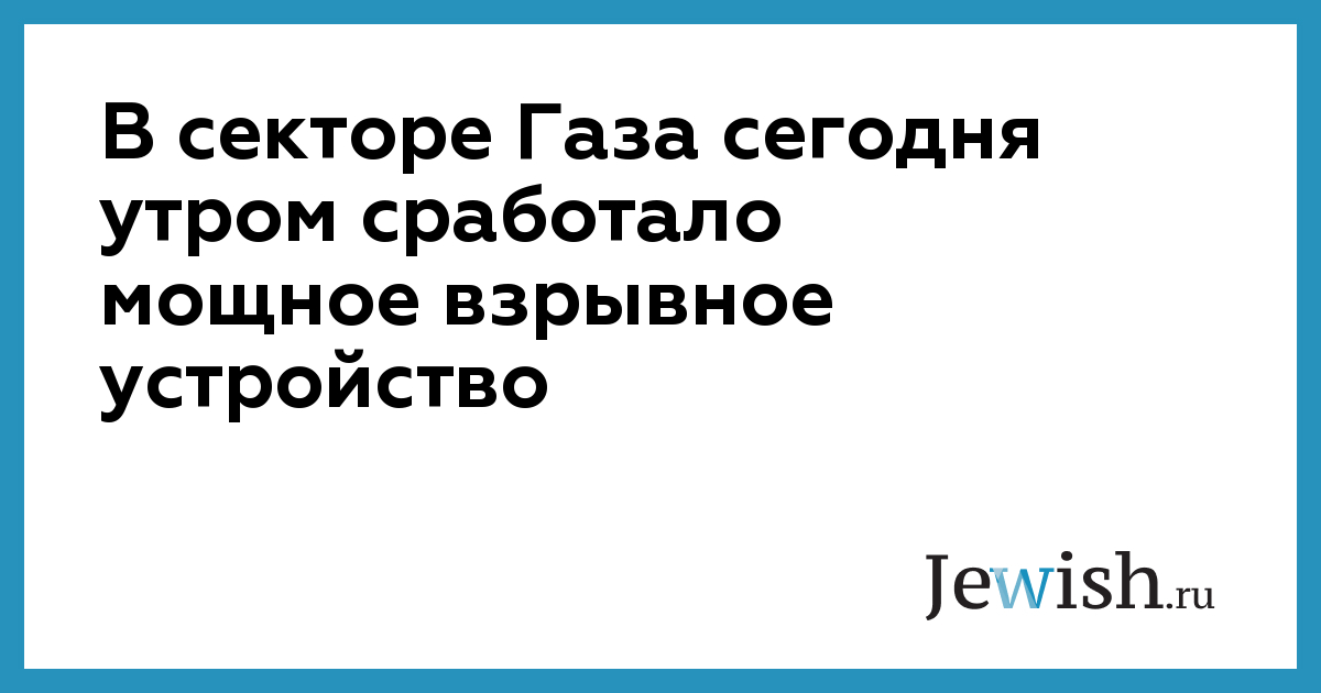 В секторе Газа сегодня утром сработало мощное взрывное устройство