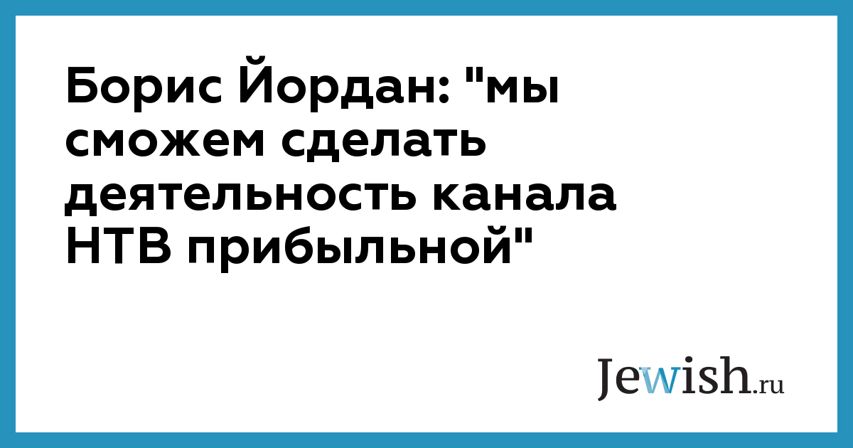 Борис Йордан: "мы сможем сделать деятельность канала НТВ прибыльной"
