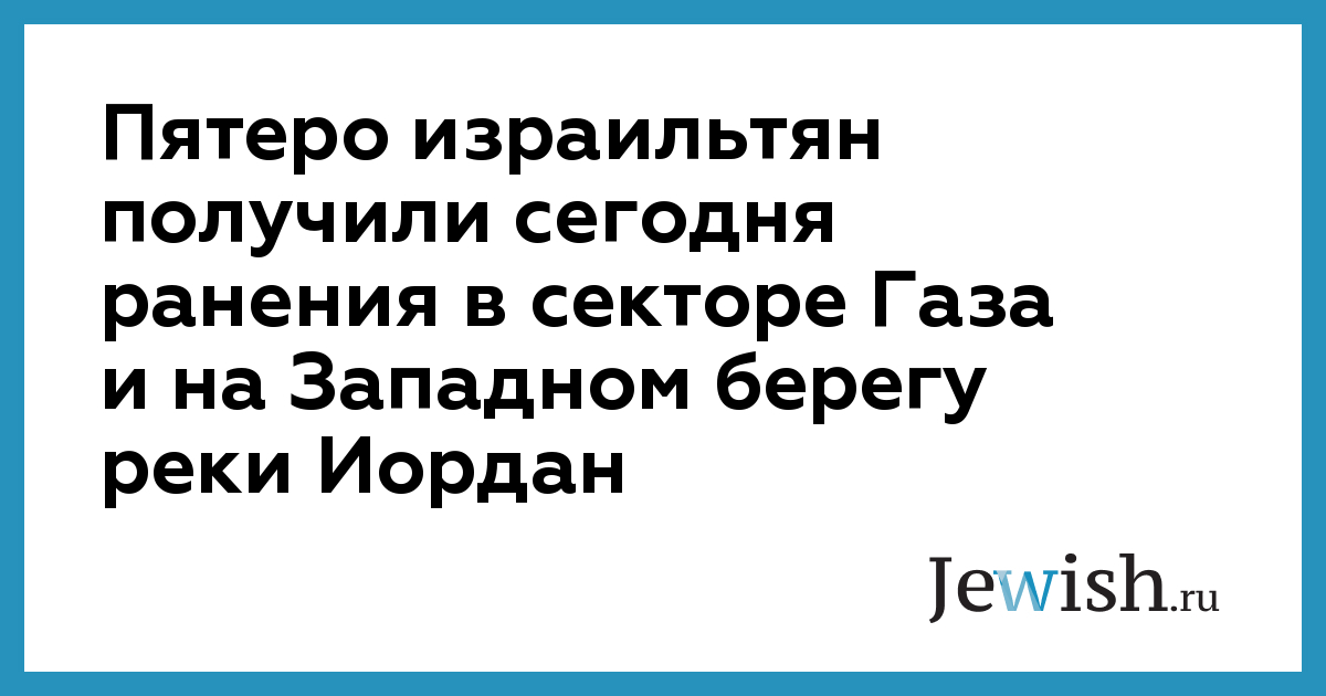 Пятеро израильтян получили сегодня ранения в секторе Газа и на Западном берегу реки Иордан