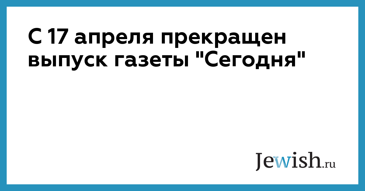 С 17 апреля прекращен выпуск газеты "Сегодня"