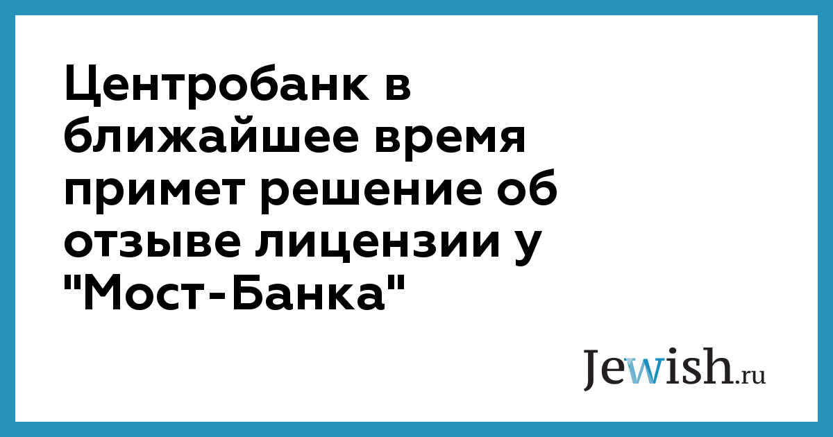 Центробанк в ближайшее время примет решение об отзыве лицензии у "Мост-Банка"