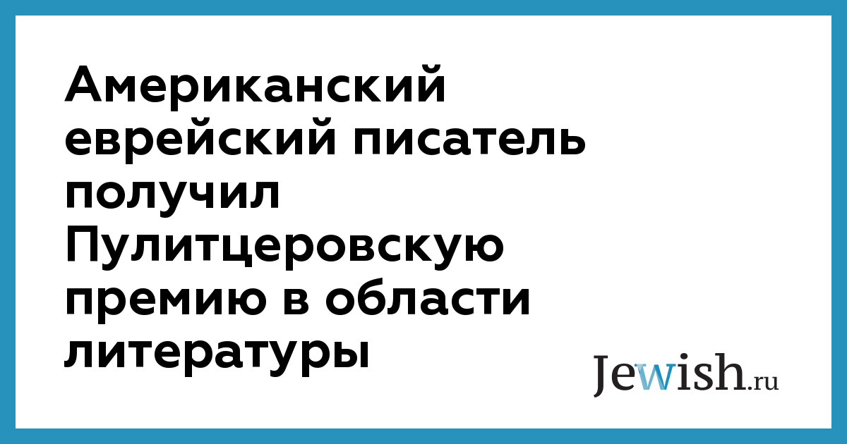 Американский еврейский писатель получил Пулитцеровскую премию в области литературы