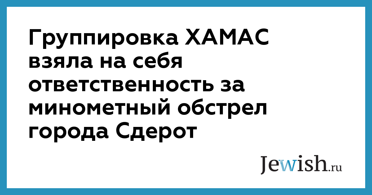 Группировка ХАМАС взяла на себя ответственность за минометный обстрел города Сдерот