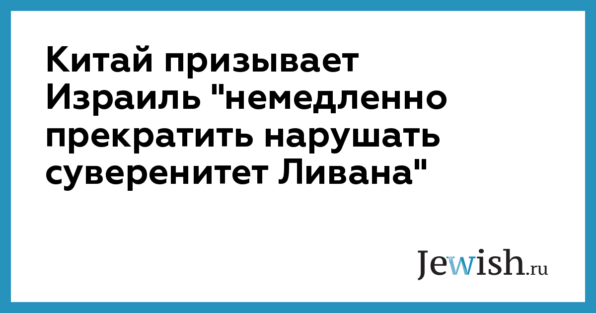 Китай призывает Израиль "немедленно прекратить нарушать суверенитет Ливана"