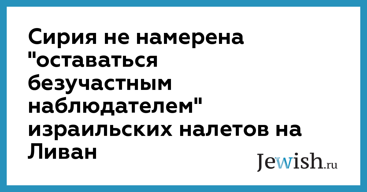 Сирия не намерена "оставаться безучастным наблюдателем" израильских налетов на Ливан